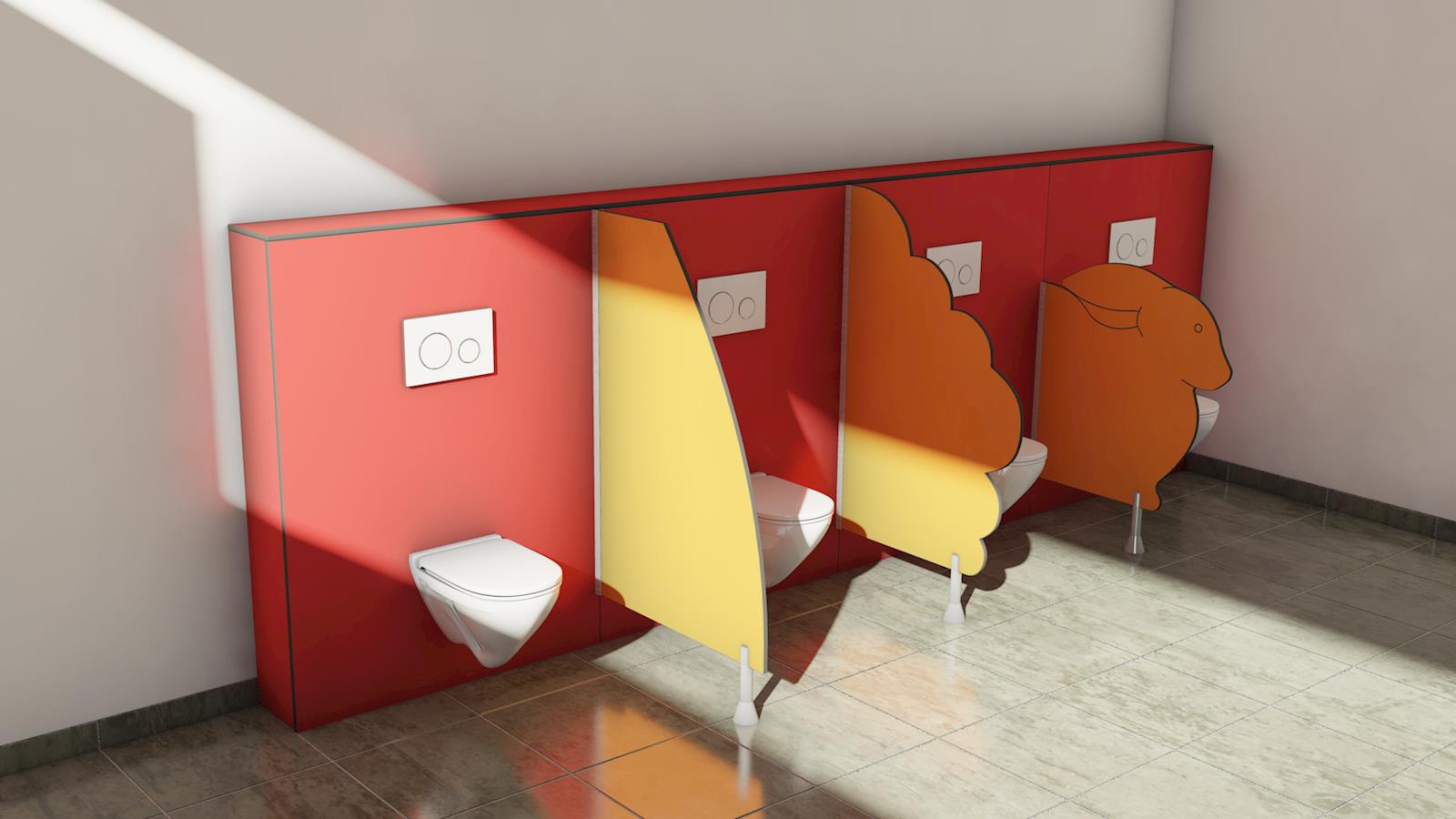 La séparation maternelle est une cloison en HPL 13mm disponible en 3 modèles différents : standard 'courbé', lapin ou nuage. La séparation pour petite enfance est fixée de manière invisible dans un profilé en T/U stable qui est vissé de manière invisible au mur. Le dessus est soigneusement fini par un embout en synthétique qui est également fixé de manière invisible dans le profil. Cela garantit une finition robuste, nette et sûre. La cloison maternelle est fixée au sol par un pied réglable en hauteur en nylon, aluminium ou acier inoxydable 316.