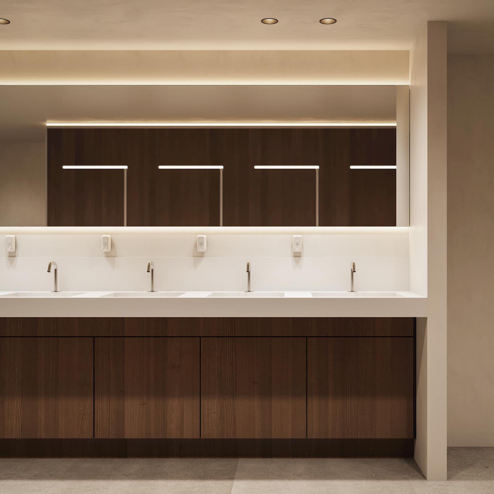 Cette gamme de meubles est spécialement conçue pour les sanitaires publics et les locaux sanitaires fréquentés par un grand nombre de personnes. Elle offre un design élégant et moderne qui s'intègre parfaitement dans tous les intérieurs et répond aux normes d'accessibilité pour les personnes handicapées.