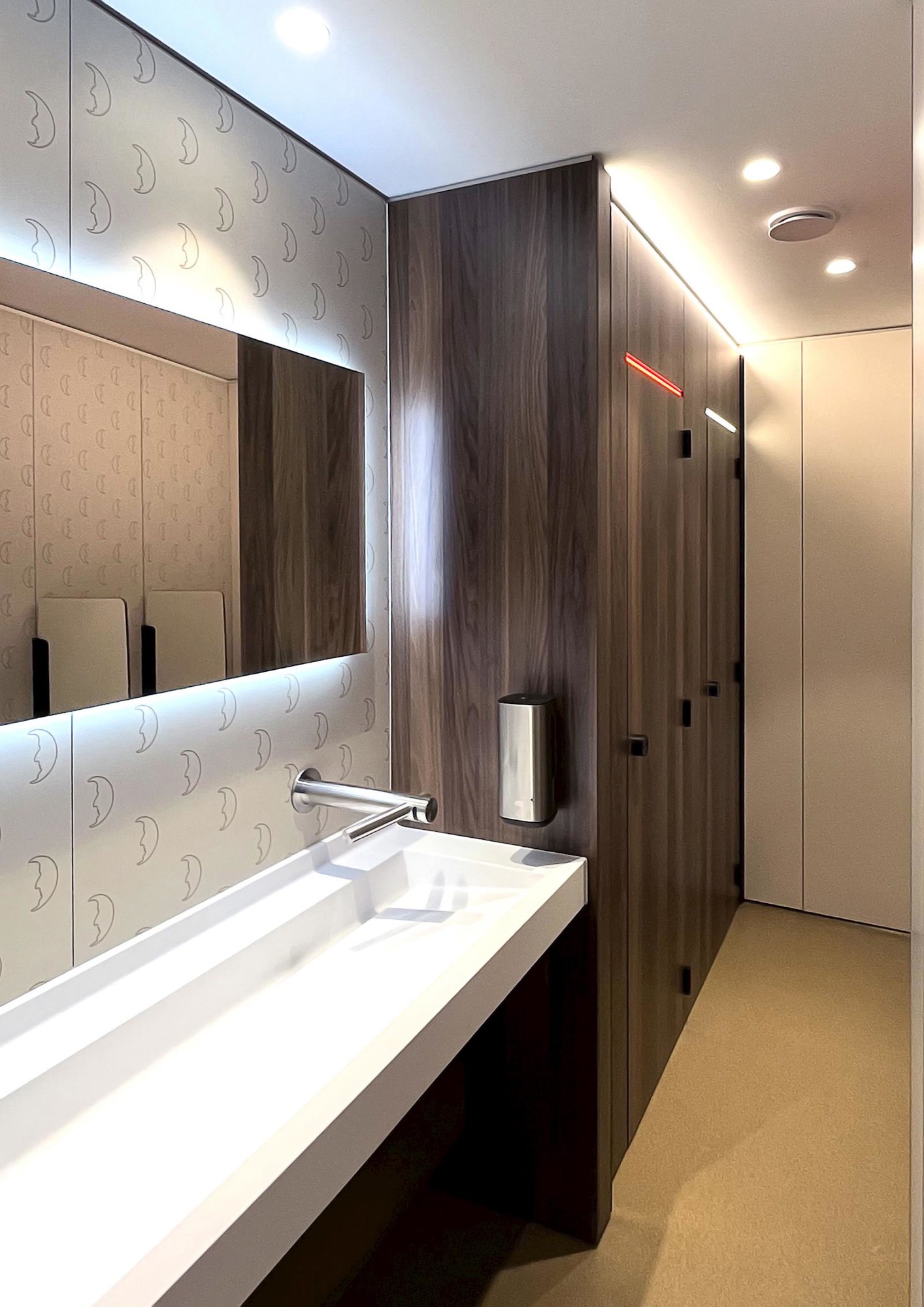 Les matériaux solid surface et HPL ont une surface lisse sans pores et sont extrêmement faciles à entretenir, résistants à l'humidité et antibactériens.