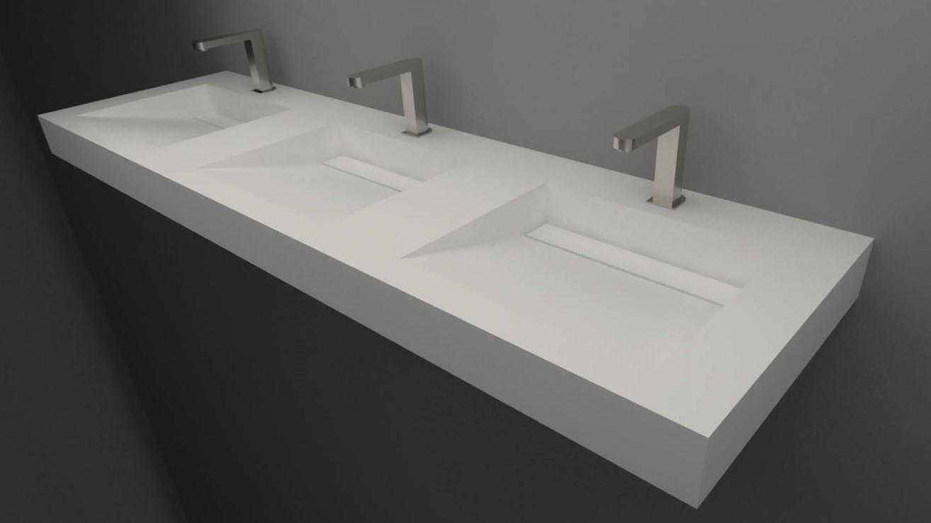 La tablette de lavabo peut être obtenue en version standard avec des longueurs fixes (1200 -1400 - 1800 mm) ou sur mesure. Pour les tablettes sur mesure, il est possible de choisir entre un lavabo commun ou une tablette de lavabo avec des lavabos individuels.