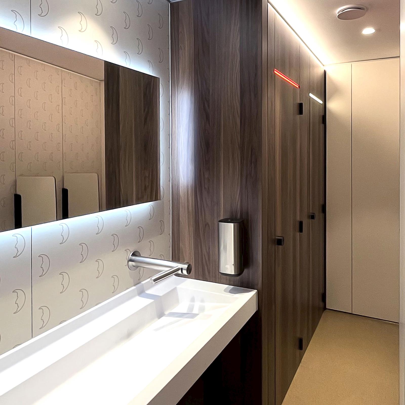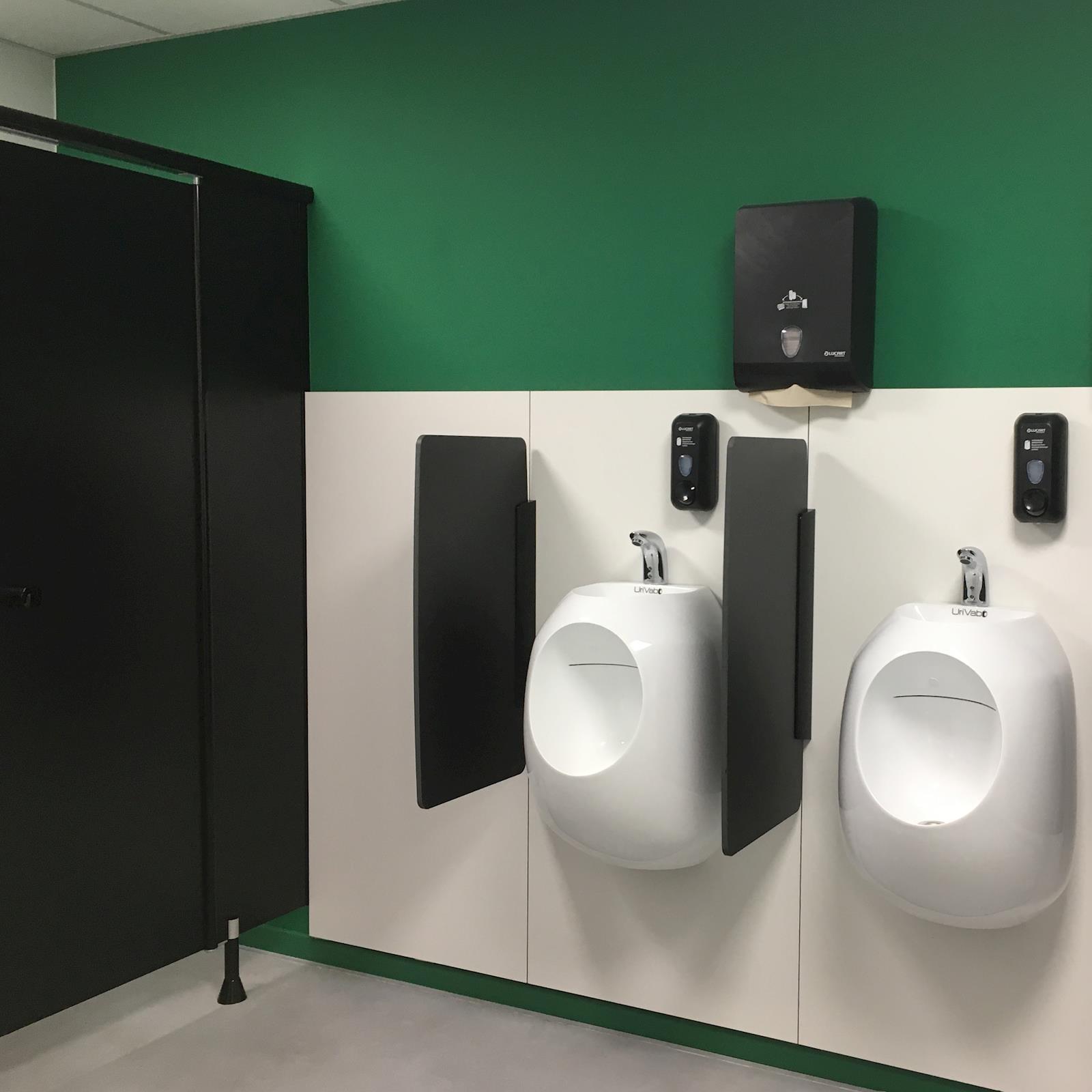 Les revêtements muraux Afkor, sont réalisés en panneaux décoratifs stratifiés haute pression (HPL). Ces panneaux hydrofuges de haute résistance mécanique sont faciles à entretenir et difficilement inflammable. Les panneaux HPL sont résistants à la plupart des produits d'entretien. La surface de ces panneaux peut également être désinfectée. Grâce à la structure fermée de la surface, le rattachement de la saleté sera évité. En dehors de qualité standard (Interior), nous pouvons fournir des panneaux dont la surface est d'une qualité encore supérieure pour faciliter le nettoyage du graffiti. (Interior plus) L'habillage est collé directement sur le lattage, lequel est vissé contre le mur existant ou sur une structure portante en bois ou métallique. Afkor peut combiner les revêtements mureaux dans les espaces sanitaires avec les cabines de toilette, de douche et les tablettes de lavabo. Les revêtements muraux en stratifié massif complètent et agrément l'ensemble de votre espace sanitaire.