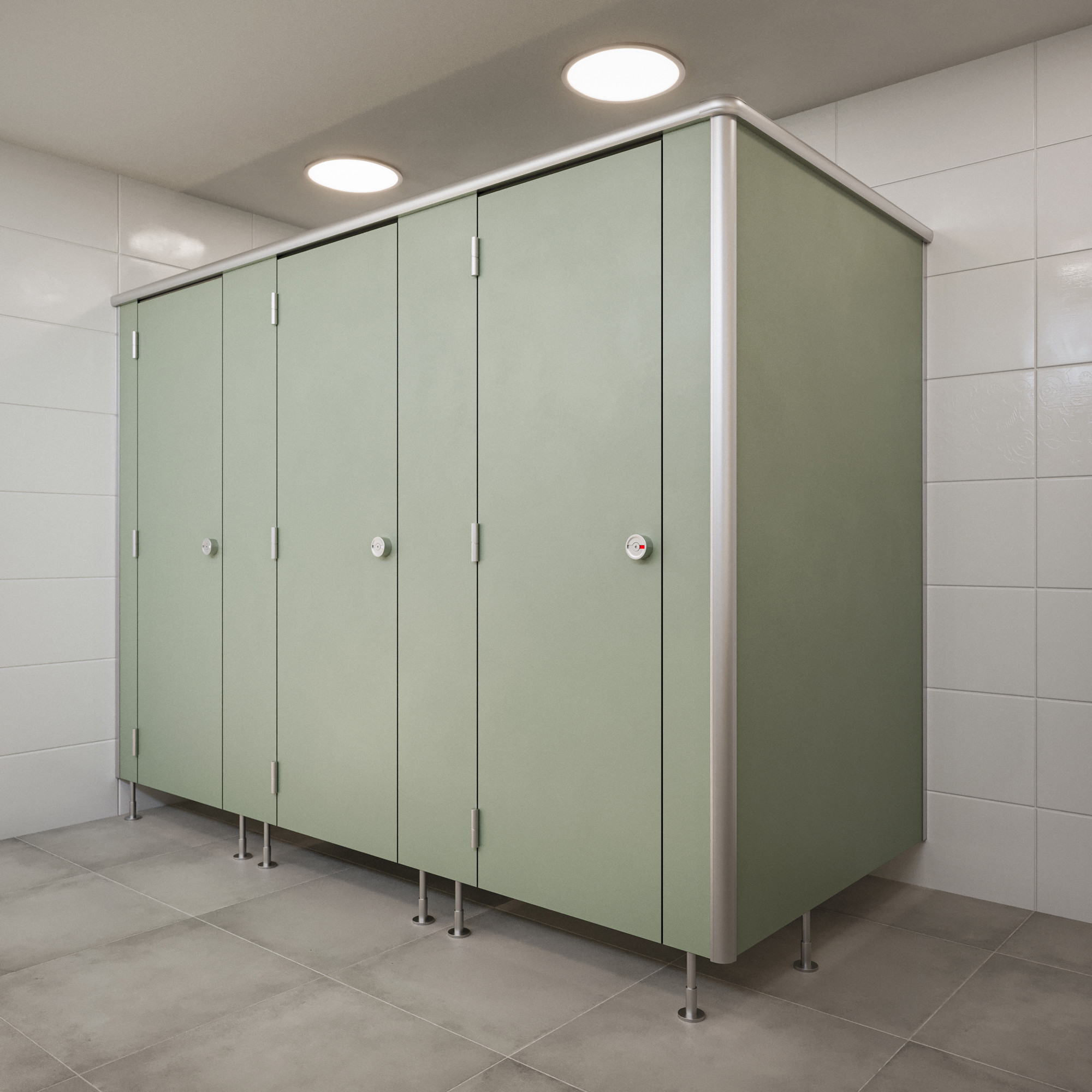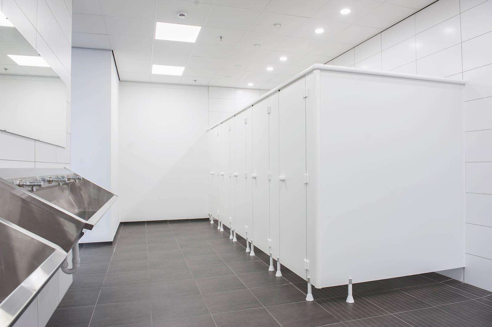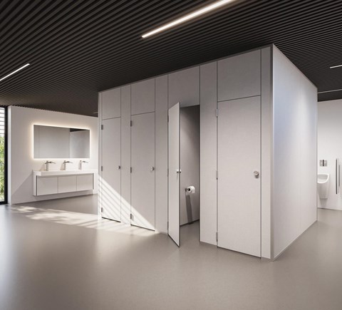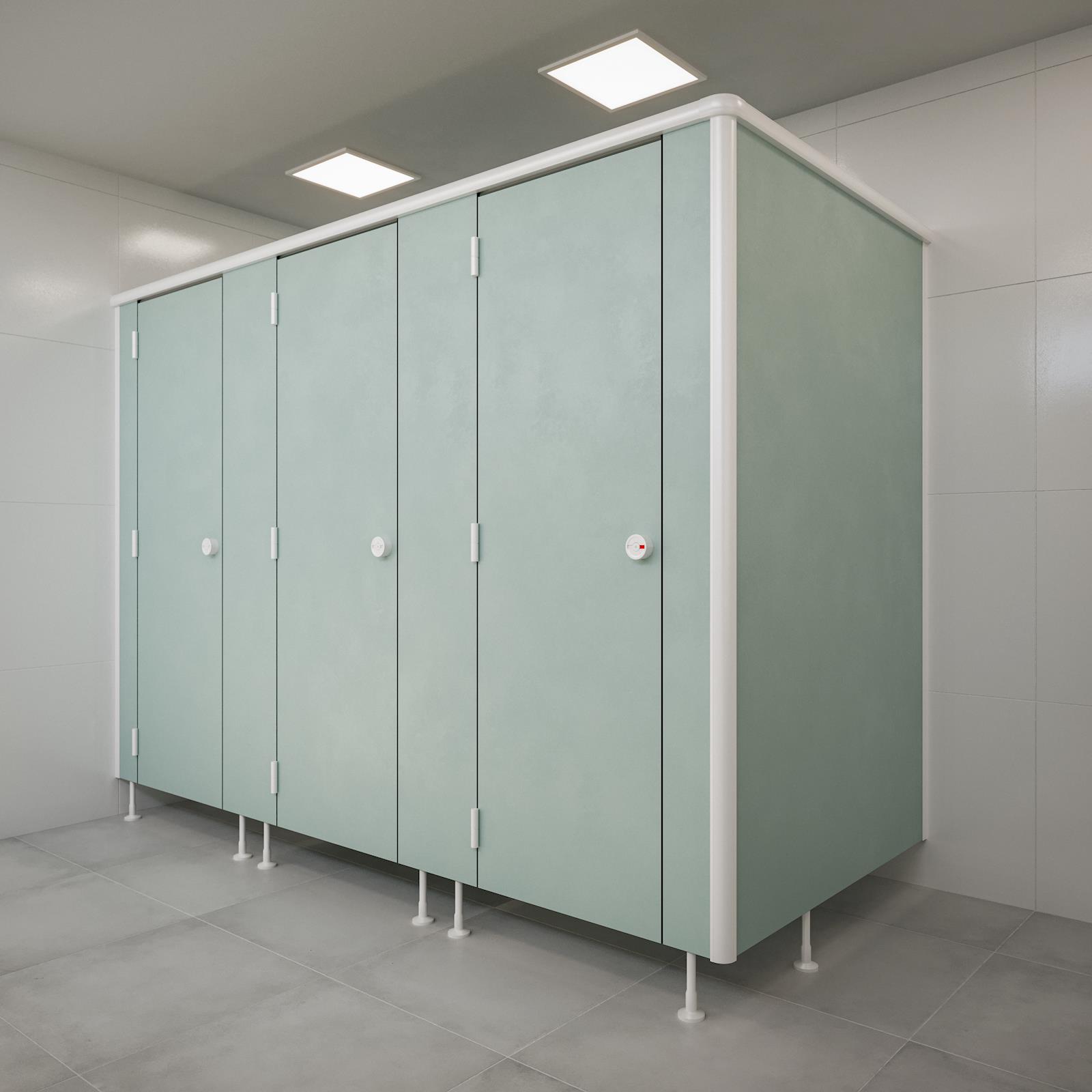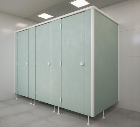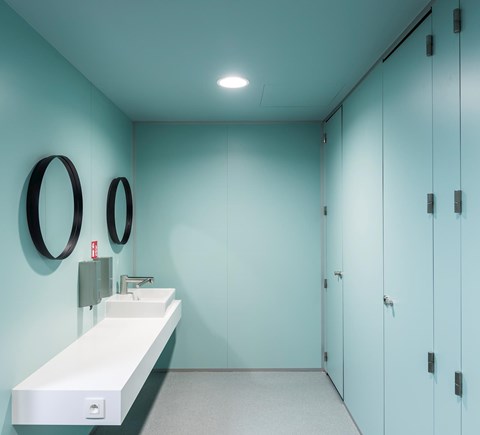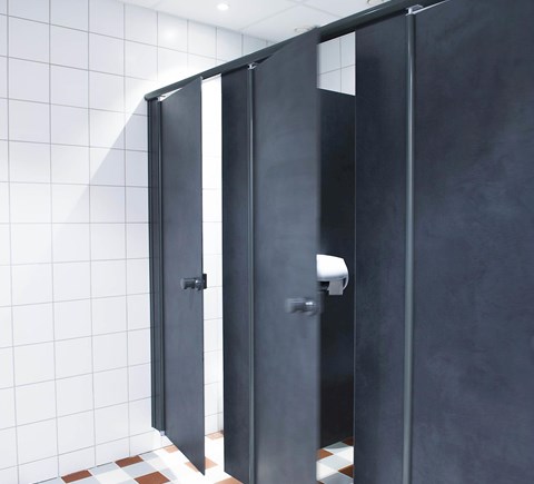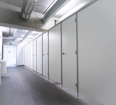 De wanden uit massieve kunststofplaten zijn zeer slijtvast, waterbestendig, antibacterieel en buitengewoon onderhoudsvriendelijk.