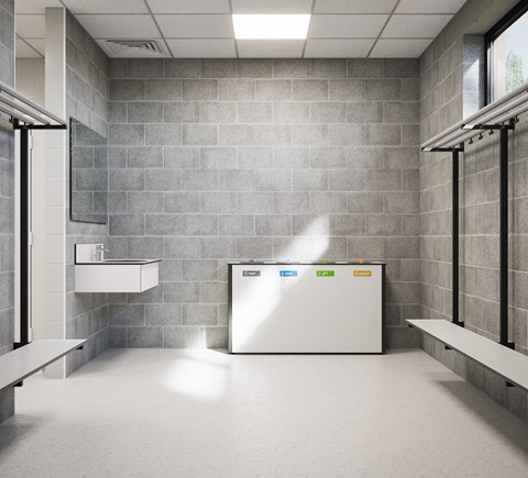 Afkor heeft een uitgebreid gamma van toepassingen voor uw sanitaire ruimtes en kleedkamers.