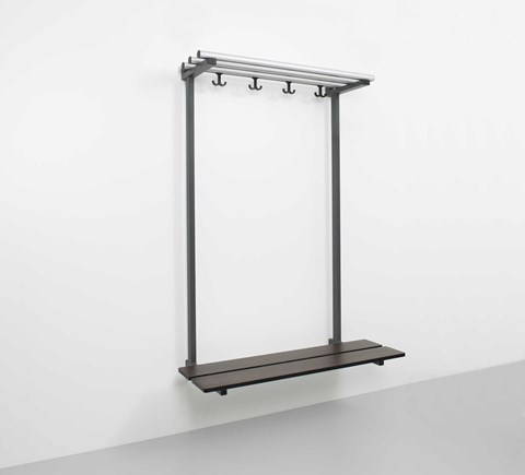 - Type WBK-t D/N : zitbank voor wandbevestiging met kleerhakenlijst en tassenrek