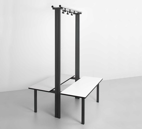- Type VBKD D/N : dubbele vrijstaande zitbank met kleerhakenlijst