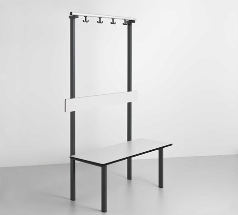 - Type VBK D/N : vrijstaande zitbank met kleerhakenlijst