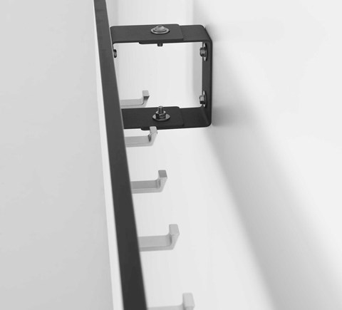 De stalen robuuste ophangsteunen worden standaard voorzien van een milieuvriendelijke anticorrosiebescherming. Voor natte ruimtes worden de ophangsteunen voorzien in thermisch verzinkt staal. Beide uitvoeringen worden afgewerkt met een donkergrijs, wit of zwart mat licht gestructureerd epoxy polyestercoating.
